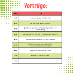 Das Programm umfasst u. a. einen Vortrag des Berliner Vereins TECH IN THE CITY e.V., der es sich zur Aufgabe gemacht hat, dem Fachkräftemangel in der Digitalwirtschaft entgegenzuwirken. Insbesondere Frauen haben hier nicht nur hohe Verdienstmöglichkeiten. Es winken zudem flexible Arbeitszeiten- und orte, sehr gute Aufstiegschancen und die Möglichkeit zum Quereinstieg.